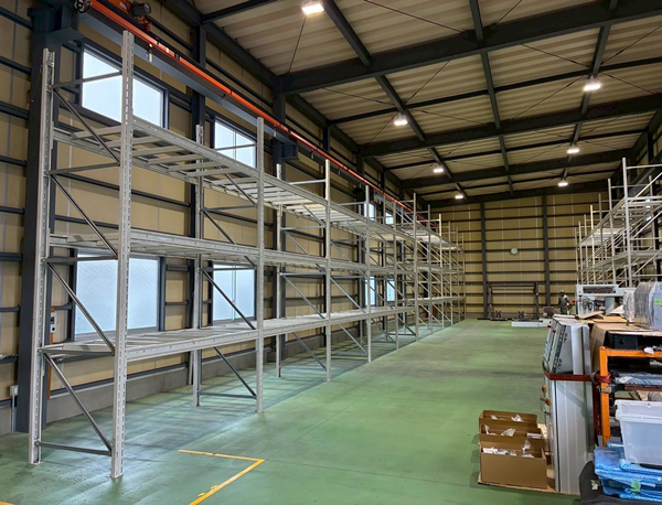 倉庫の保管効率向上のため、パレットラックを設置しました。